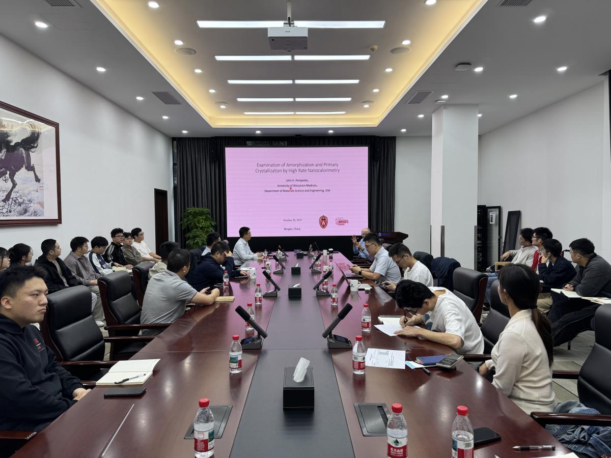 10月20日上午,应中国科学院宁波材料技术与工程研究所王军强研究员邀请,美国威斯康星大学麦迪逊分校John H. Perepezko教授来访宁波材料所,并作了题为“Examination of Amorphization and Primary Crystallization by High Rate Nanocalorimetry”的学术报告。
